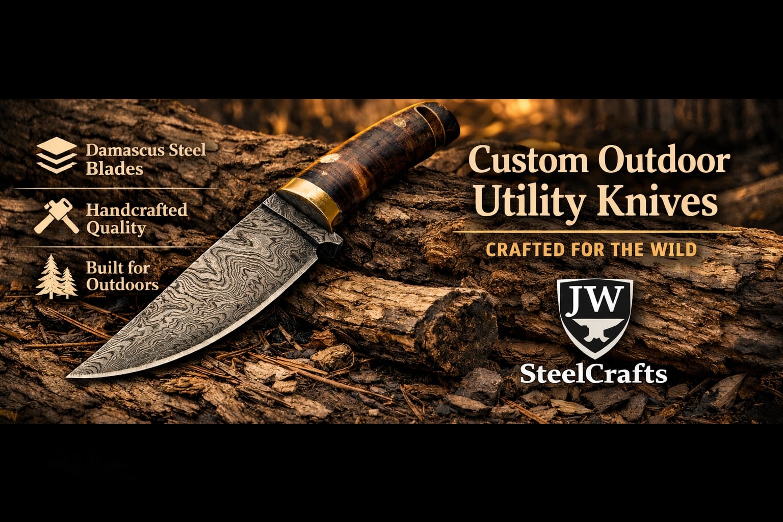 USA Handle Outdoor Knife – Handcrafted Damascus Steel Blade | Leather Sheath | JW SteelCrafts