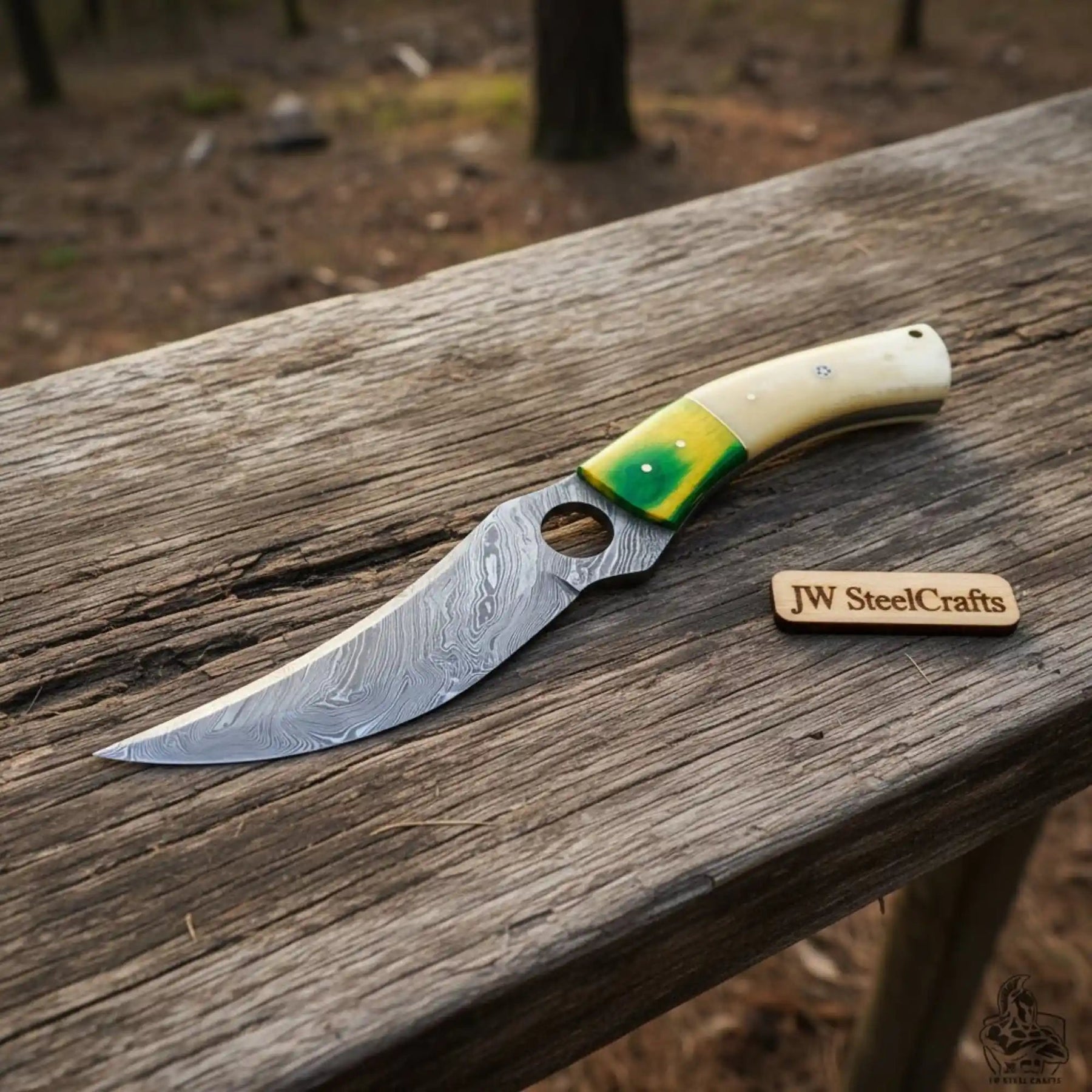 Collectors who appreciate distinctive handle craftsmanship often explore pieces such as the American flag Damascus utility knife, another example of unique handle design within the JW SteelCrafts lineup.