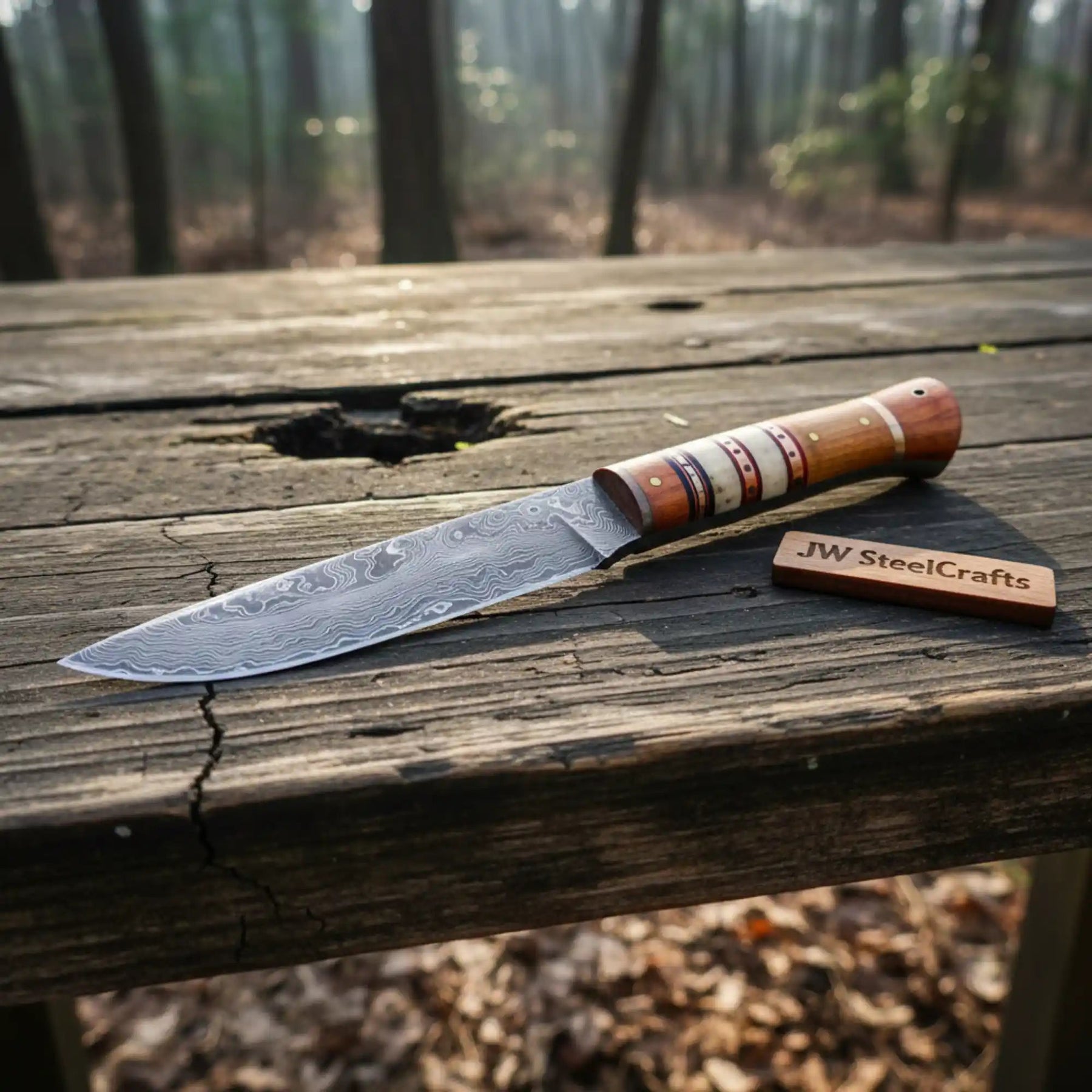 10 Inch Damascus Steel Hunting Knife with Stacked Wood Handle | JW SteelCrafts