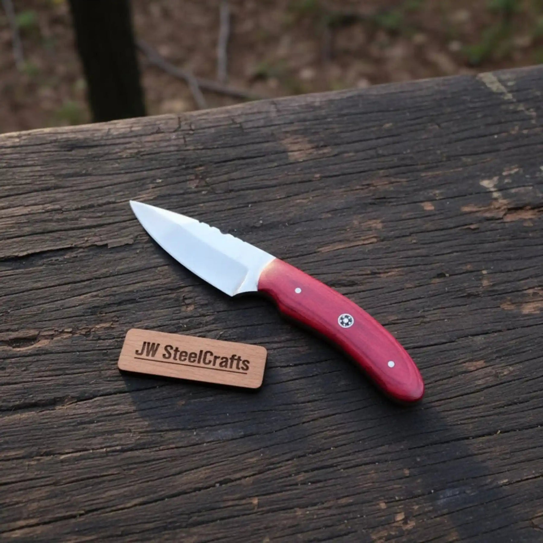 Each JW SteelCrafts knife is handcrafted, so small variations in wood grain and finish occur naturally.