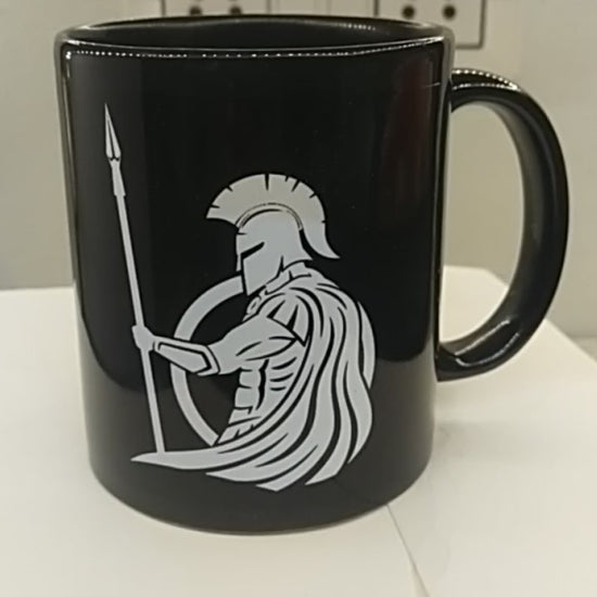 Black Ceramic Mug with Mythic-Inspired Art Design – Handmade Coffee Cup | JW Steel Crafts