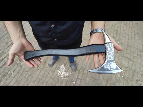 Discover the exquisite craftsmanship of the **Custom Made Hand Forged Axe With Skull Design.** by JW SteelCrafts.