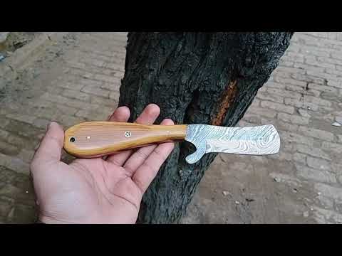 Discover the exquisite craftsmanship of the **Damascus skinner knife with wood on handle.** by JW SteelCrafts.