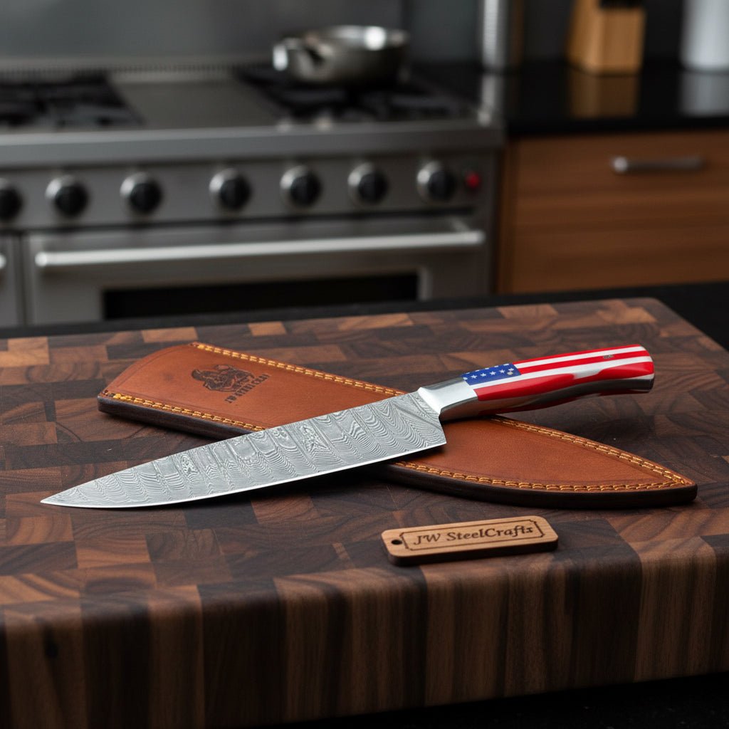 JW SteelCrafts produces handmade Damascus chef knives designed for consistent performance, durability, and real kitchen functionality.