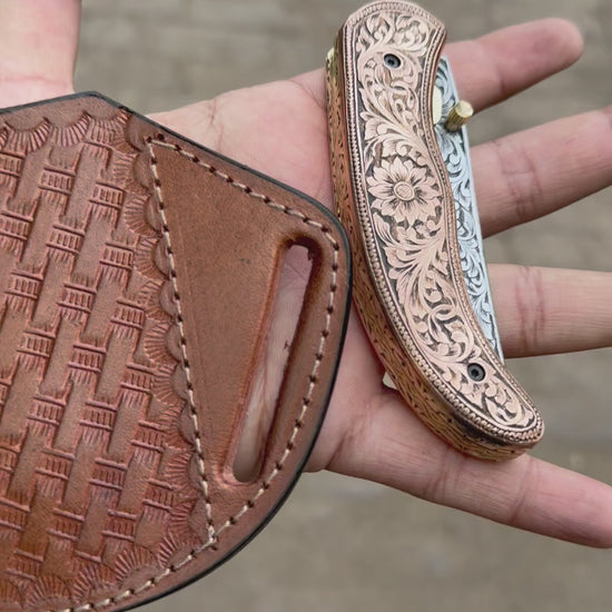 Hand-Engraved Brass Folding Knife | Floral Engraved Pocket Knife | Collector Gift by JW SteelCrafts