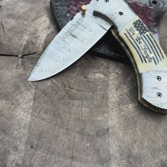 “We The People” Damascus Folding Knife – JW Steel Crafts