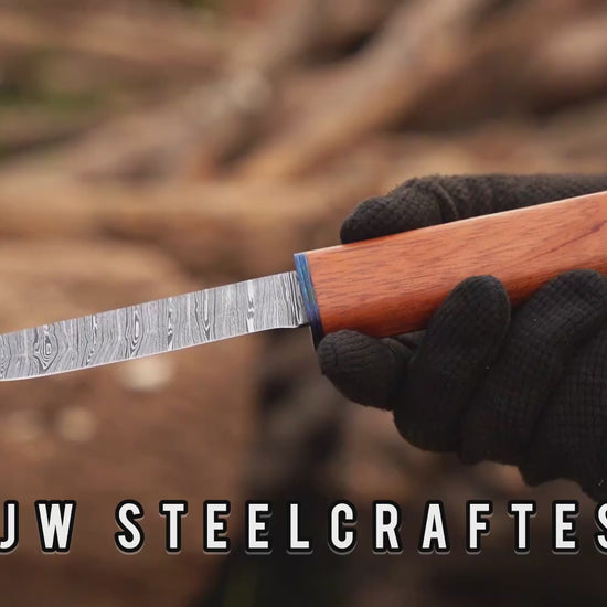 Expertly hand-forged Damascus steel with layered patterns for sharpness and durability. Bone-and-wood handles offer strength, comfort, and unique character.