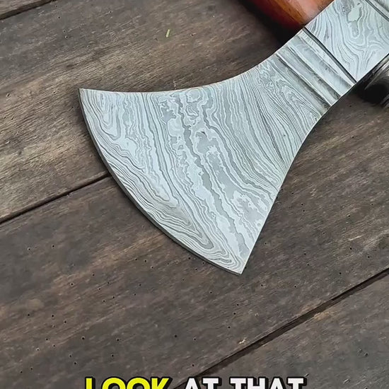 Hand-Forged Damascus Viking Axe – Steel Blade with Polished Wood Handle