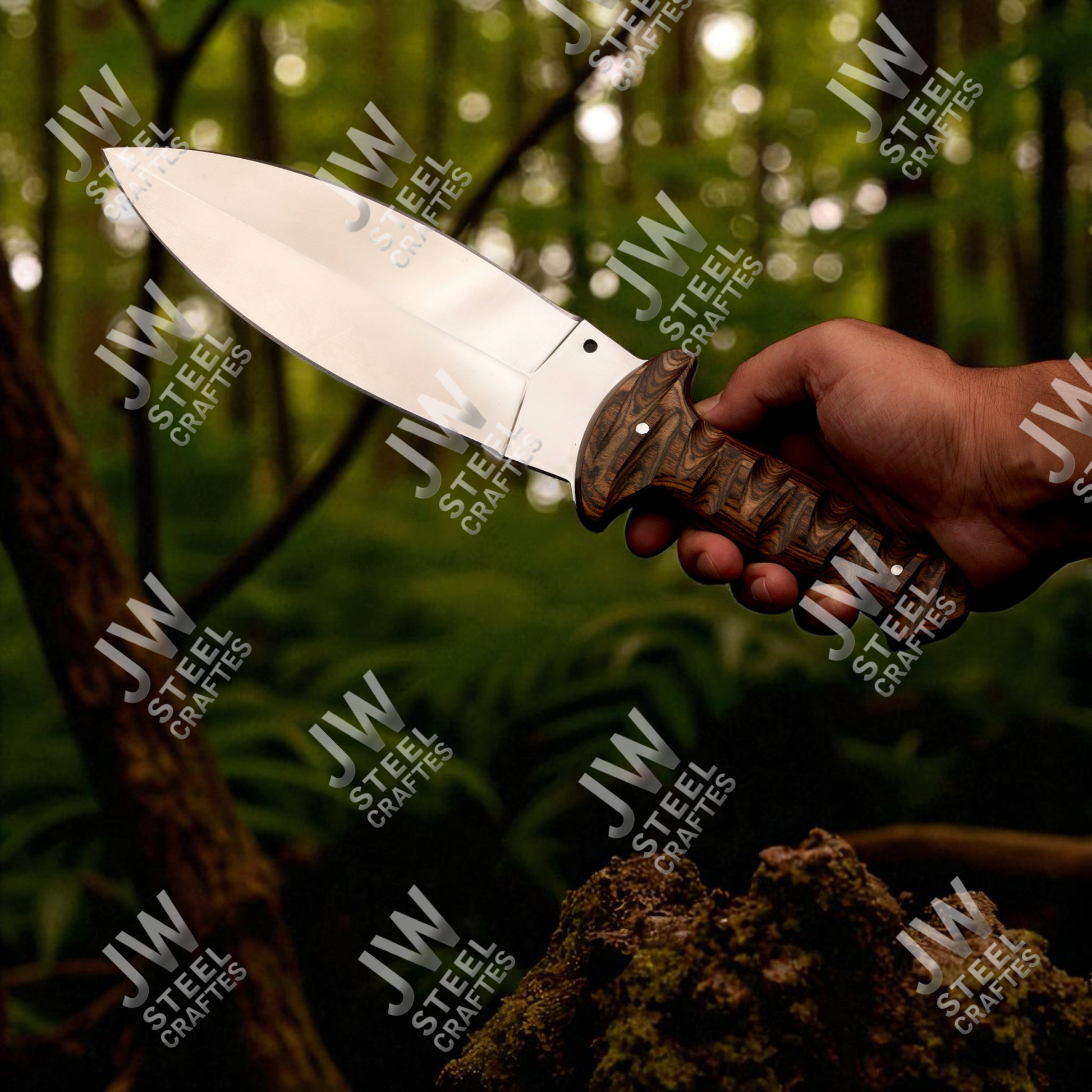 This premium dagger knife is hand forged from J2 stainless steel and crafted with precision for outdoor enthusiasts, hunters, and collectors. Featuring a razor-sharp 8" blade with a 59–60 Rockwell hardness, it ensures durability and excellent edge retention.