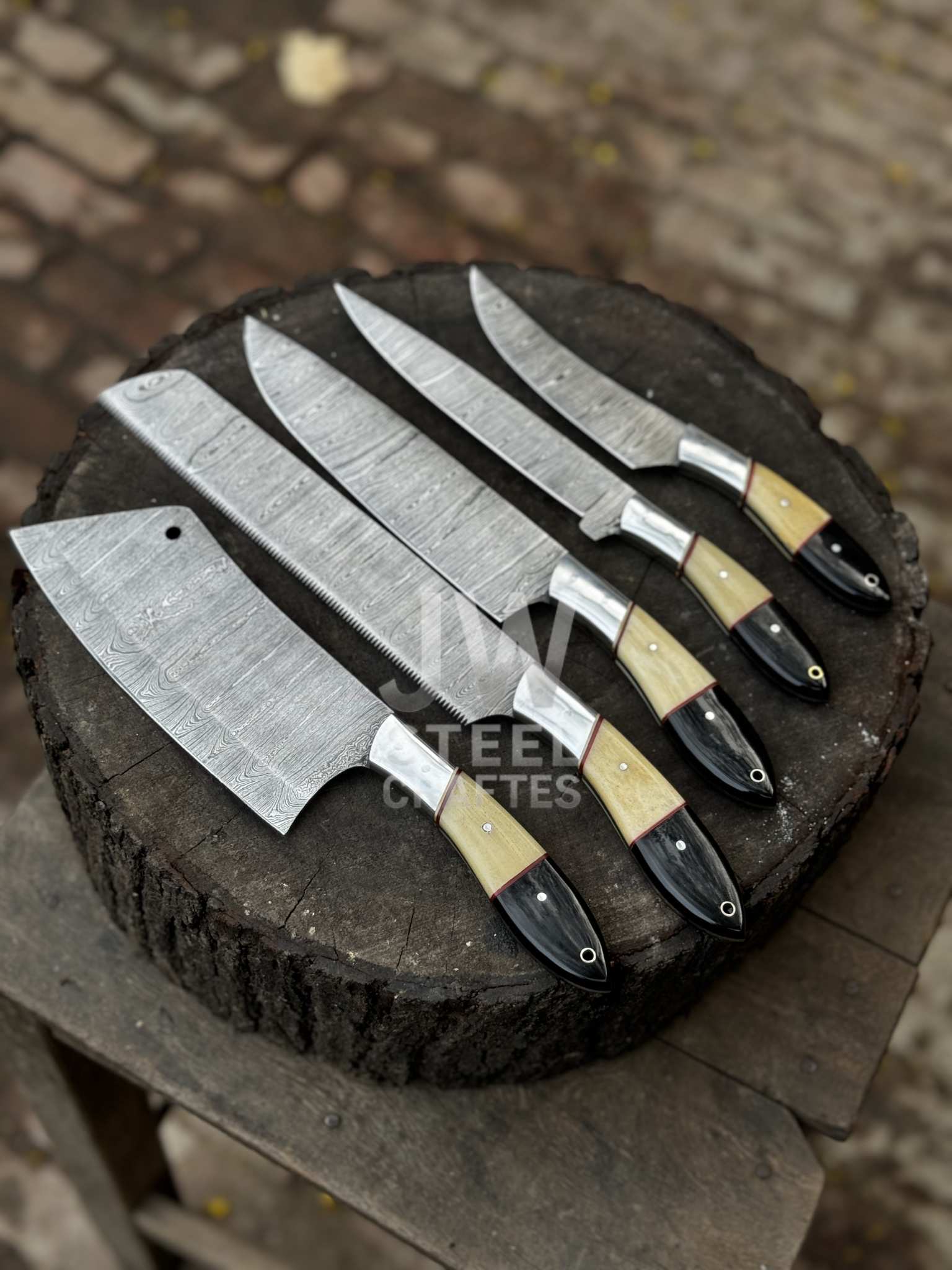 Handmade Damascus Kitchen Knife Set – 5 Piece Chef & Butcher Collection with Dual-Tone Handles