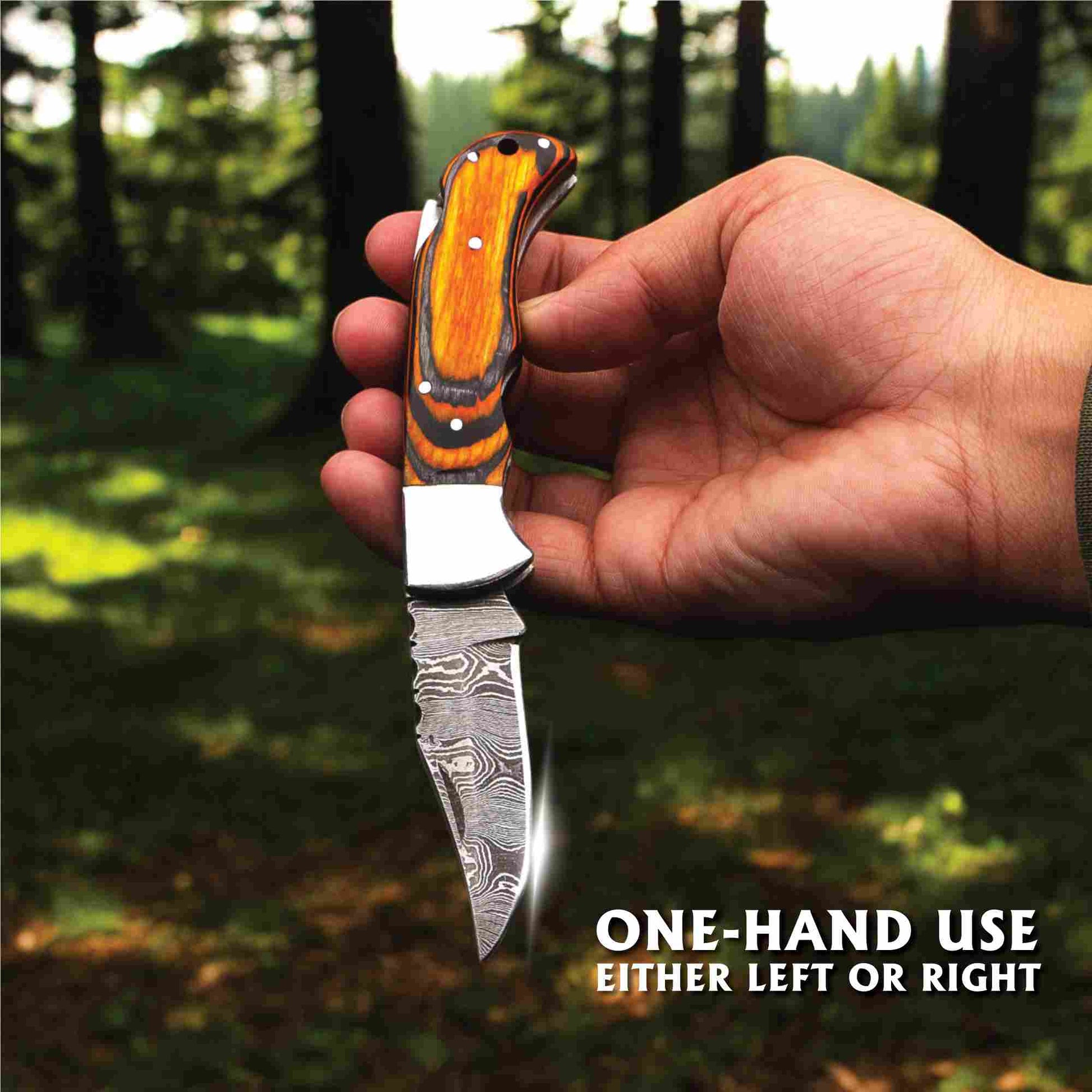 Celebrate craftsmanship and style with this Handmade Damascus Pocket Knife, the perfect blend of elegance and utility. Designed for everyday carry, groomsmen gifts, weddings, and anniversaries, this folding knife is both functional and Personalizable.