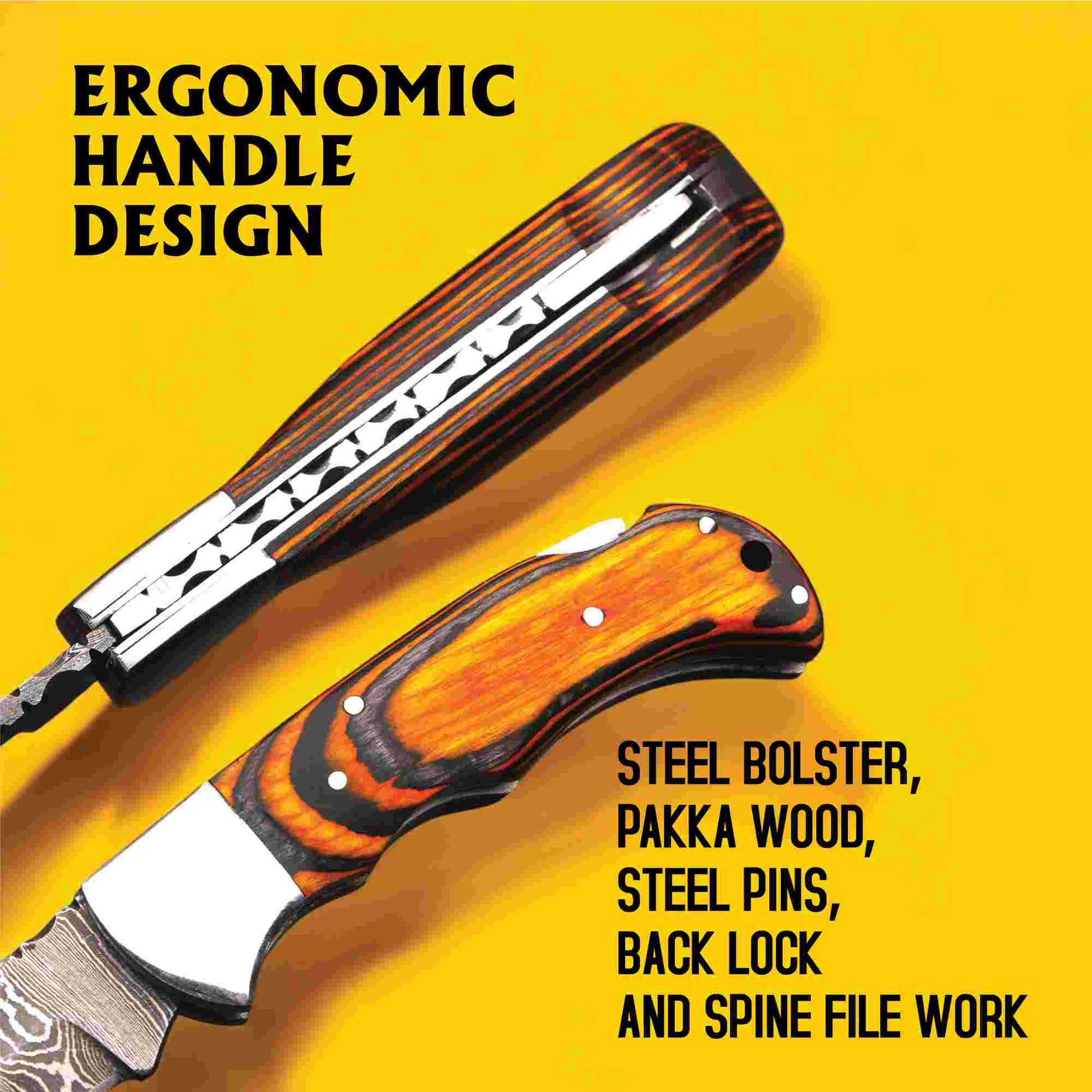 Blade: Forged Damascus steel, renowned for its strength, durability, and unique wave patterns.