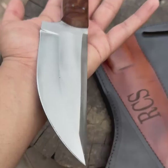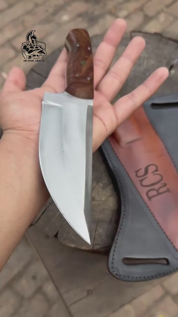 Handmade Damascus Skinner Hunting Knife –Rose wood Handle with Leather Sheath