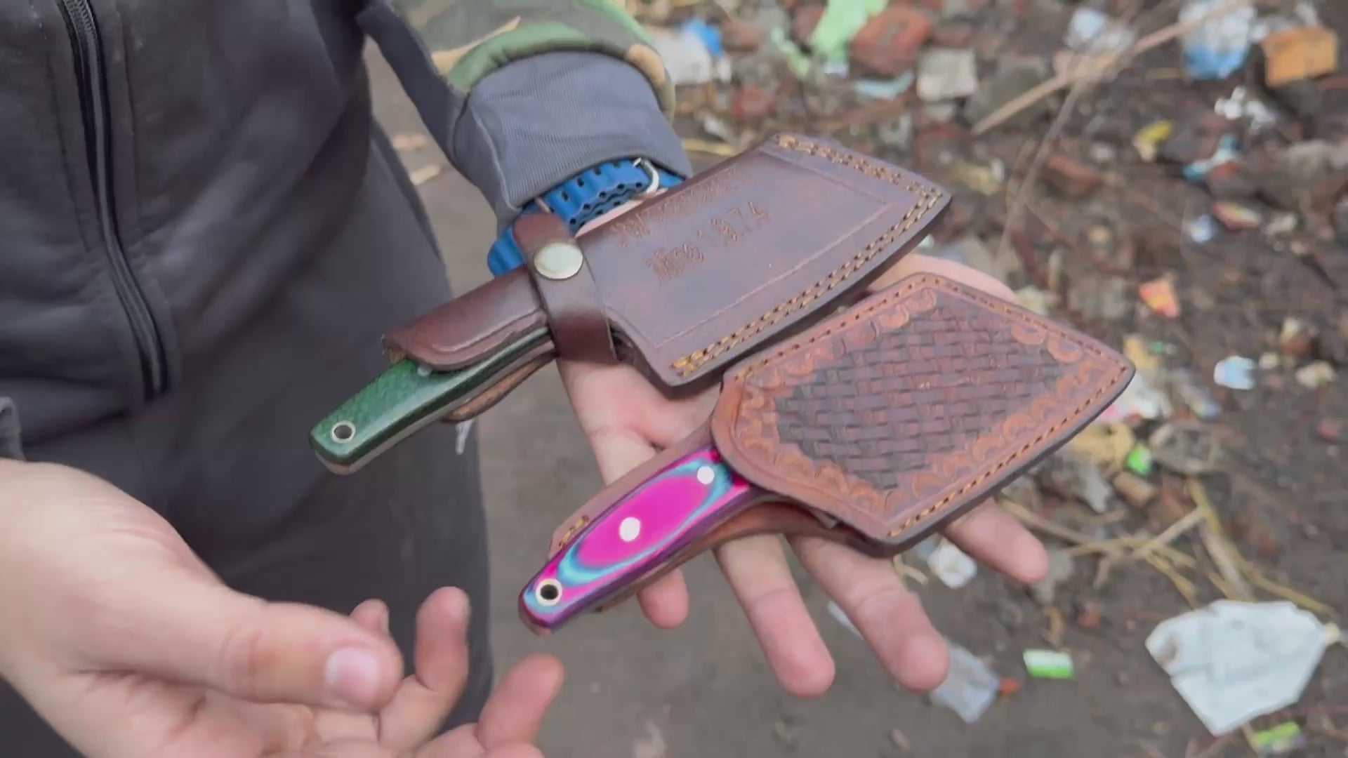 Pink/Blue Layered Wood Handle – bold and vibrant finish