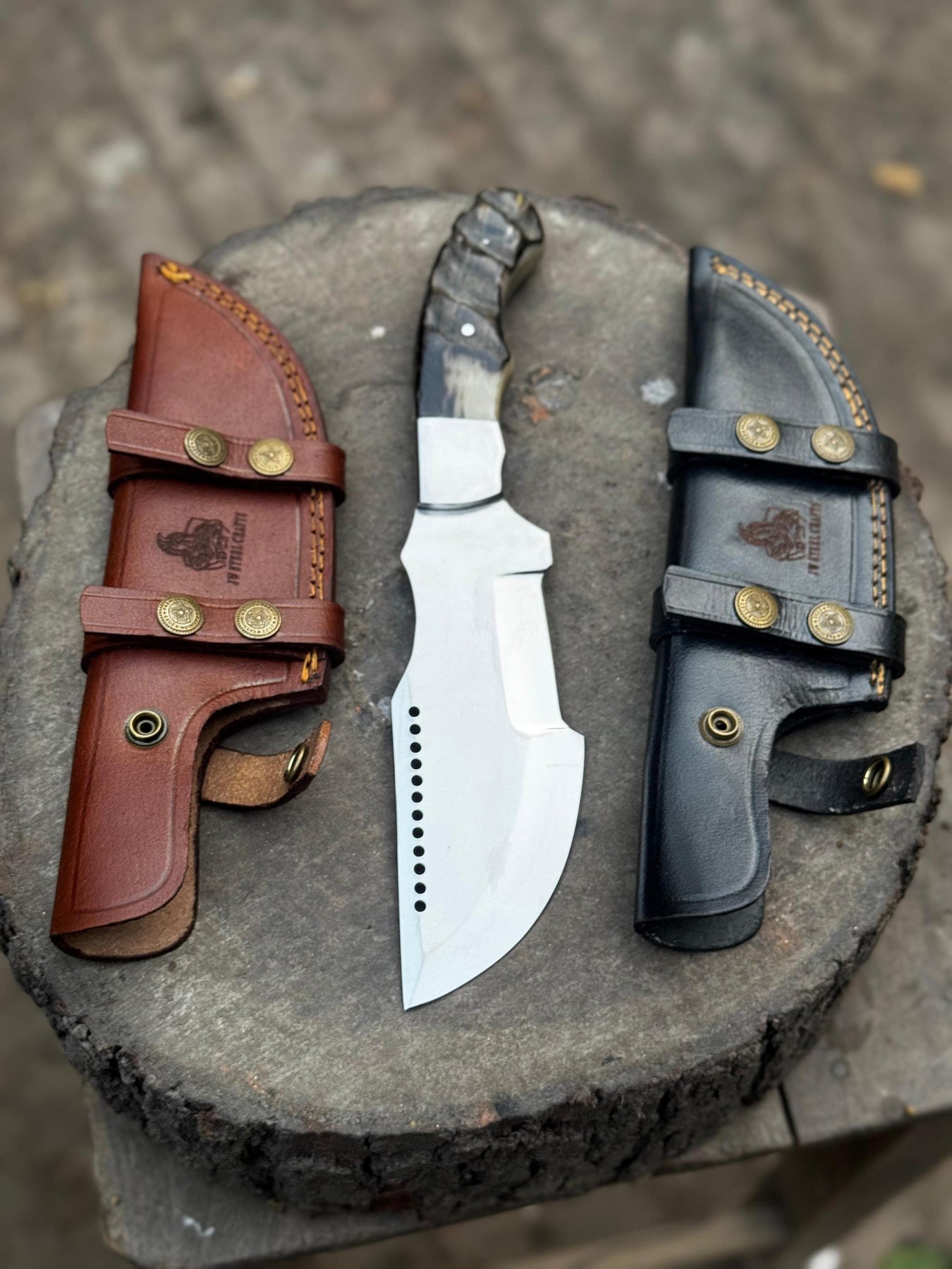 Handmade Stainless Steel Tracker Knife – Ram Horn or Wendi Wood Handle | Heavy Duty Hunting & Camping Knife | JW SteelCrafts