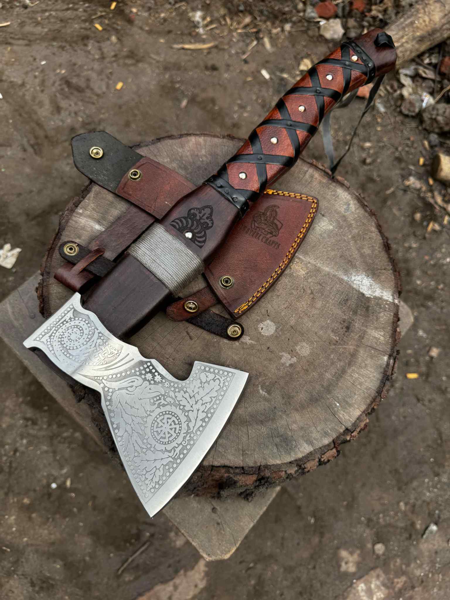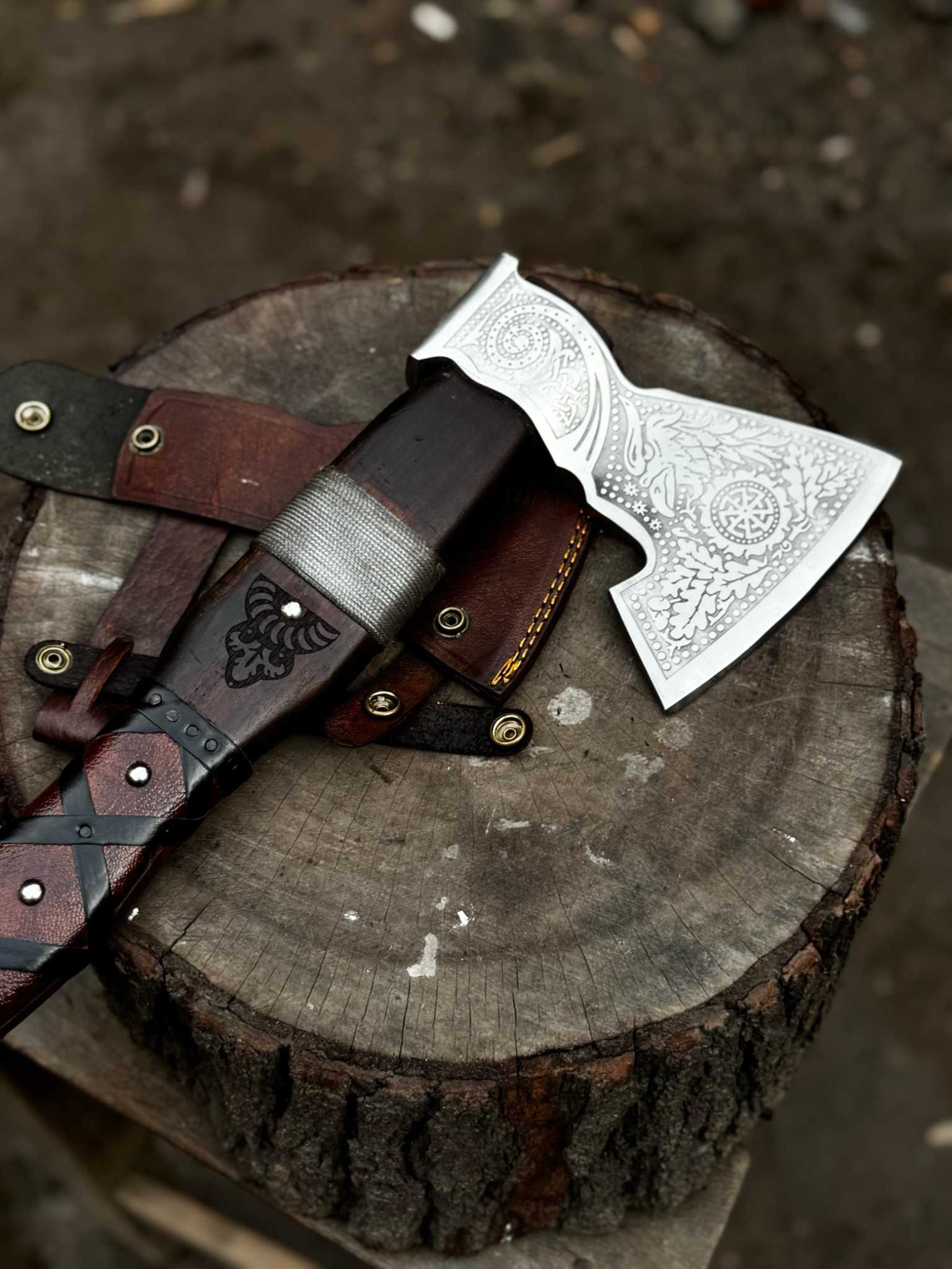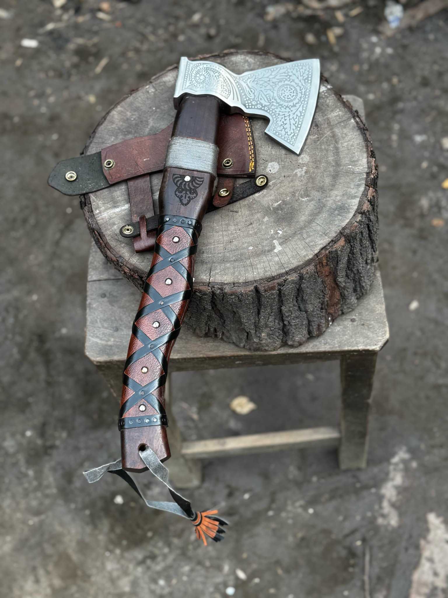 Handle: Solid wood handle with hand-burned Celtic/Viking motifs