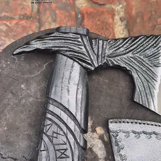 Discover the exquisite craftsmanship of the **Personalized Handmade Viking Battle Axe Custom Gift Forged Steel VIKING AXE with Engraved Wood Handle Anniversary Boyfriend husband Gift** by JW SteelCrafts.