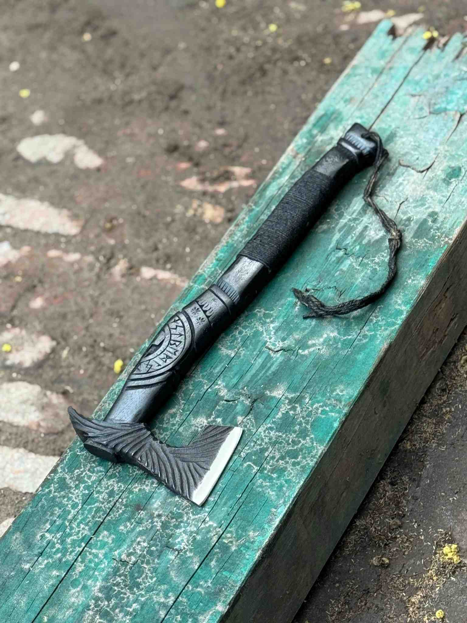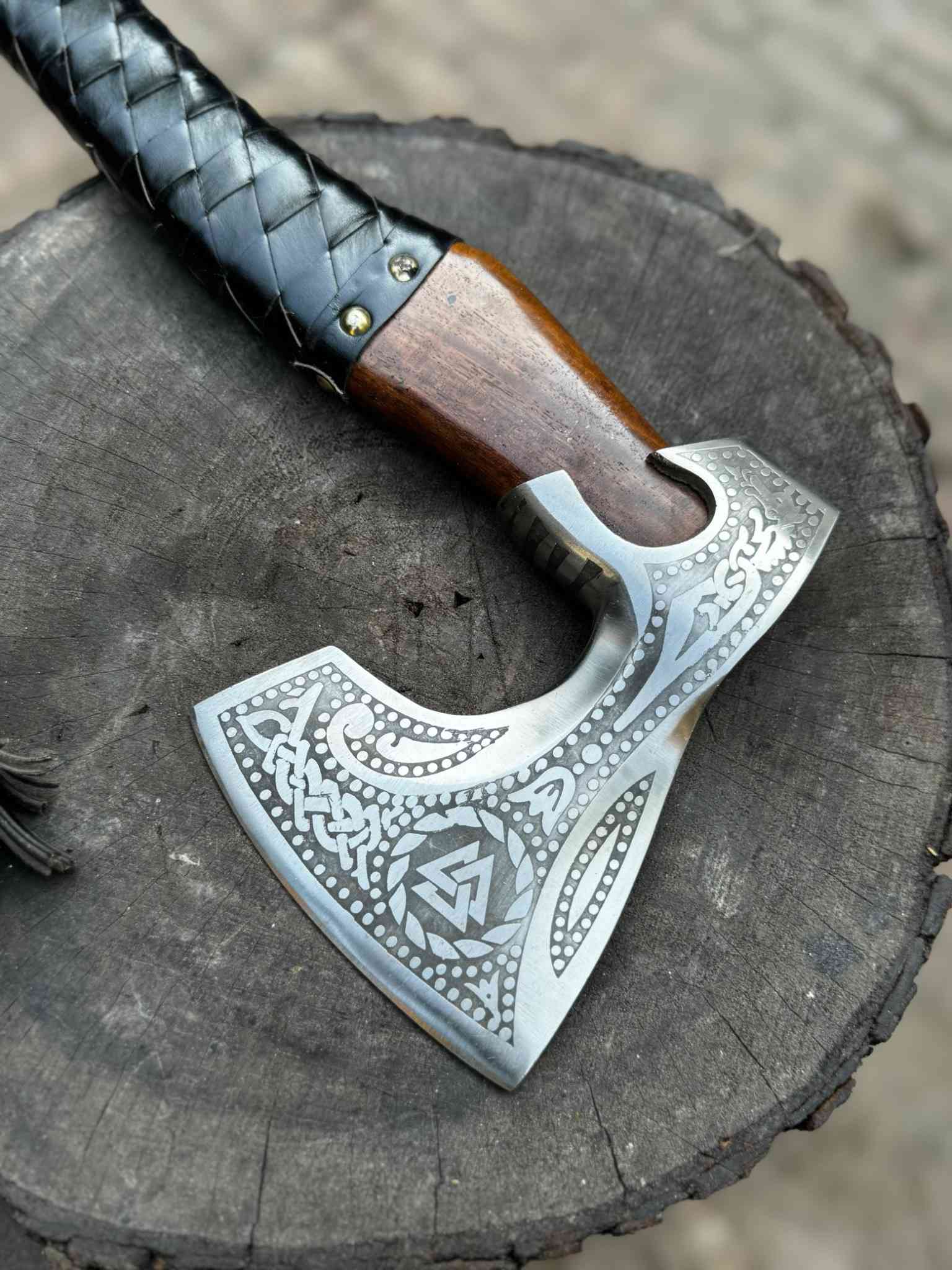 Personalized Viking Axe Bearded Handcrafted Viking Battle Axe – Engraved Carbon Steel Blade with Wooden Handle With Leather Sheath