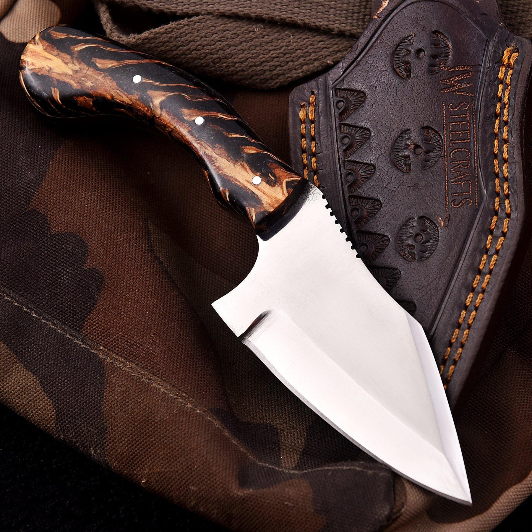 - Handcrafted leather sheath included