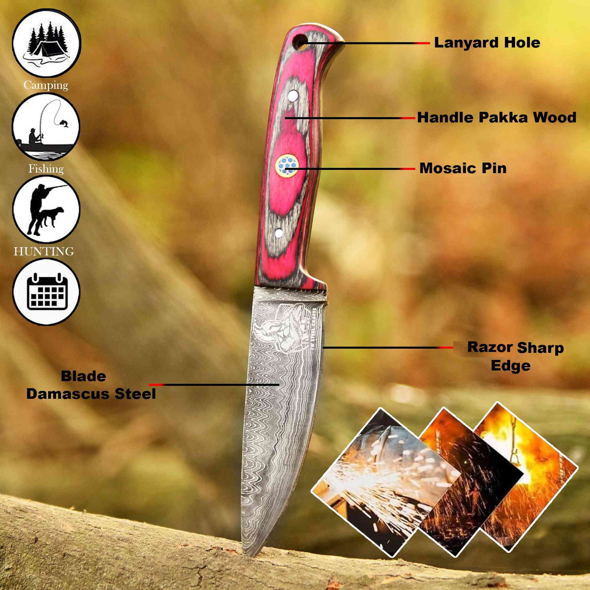 Skinner Knife Damascus Steel Handmade Fixed Blade Bushcraft Knife Personalized Custom Knife Birthday Gift Wedding Gift Present for her